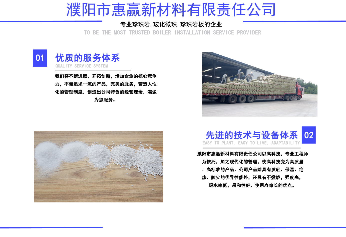濮陽市惠贏新材料有限責任公司是一家專業(yè)生產保溫材料的廠家,位于范縣王樓鎮工業(yè)區,專業(yè)生產珍珠巖、珍珠巖保溫板、玻化微珠等保溫建材,主要用于外墻保溫、屋面保溫、園藝等領域,產品暢銷國內外,深受客戶一致好評。我們擁有優(yōu)秀的產品和服務,在成立以來都以誠信對待客戶! 公司擁有各類專業(yè)人才,技術人員50人,運輸40人,專業(yè)的十多輛運輸車輛。產品銷售網絡遍及國內20多個省市,十幾年來,通過公司的不懈努力和誠信經營理念,產品質量可靠,價格合理,深受廣大客戶認可和好評! 我公司本著以客戶為本,客觀實際,創(chuàng)新發(fā)展的原則,在追求完美極致的道路上努力打造行業(yè)新標準,我公司憑借卓越的產品質量、完善的服務標準、良好的口碑信譽、竭誠歡迎廣大客戶前來洽談業(yè)務!...